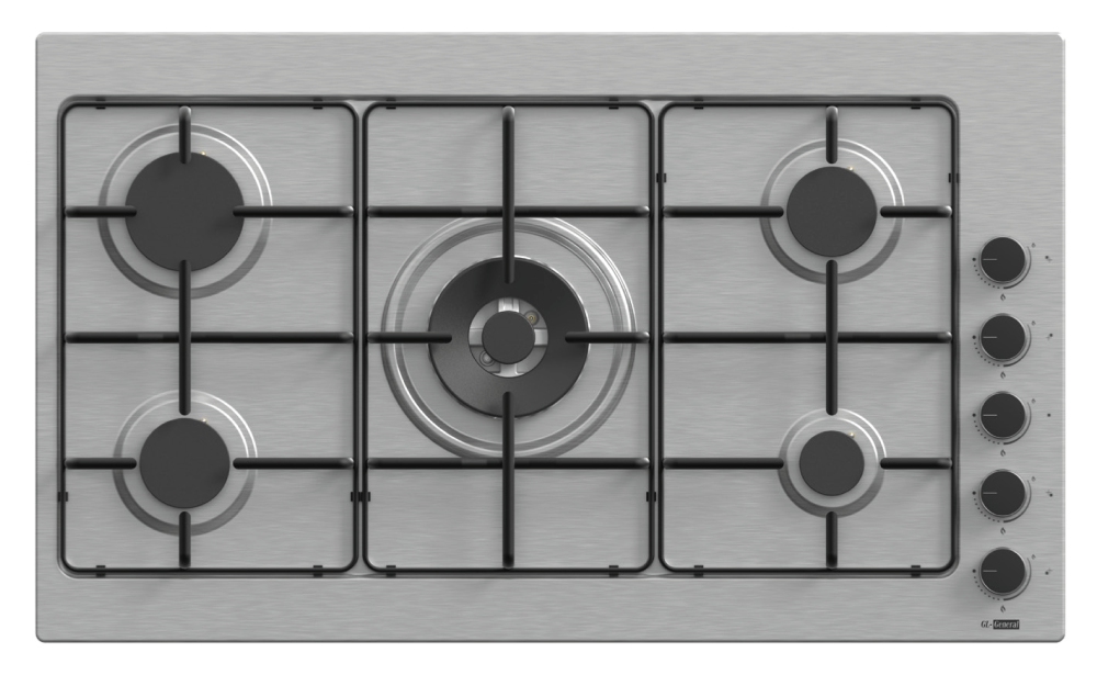 موقد بيلت ان جل جينرال 90 سم 5 عيون غاز لون ستيل منصب عريض مفاتيح جانبيه صنع في تركيا EL012