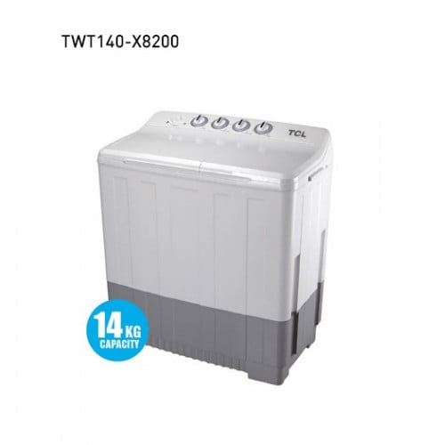 غسالة ملابس تي سي ال 14 كيلو حوضين صنع في الصين ابيض ورمادي مدخل مياه مزدوج TWT140-X8200