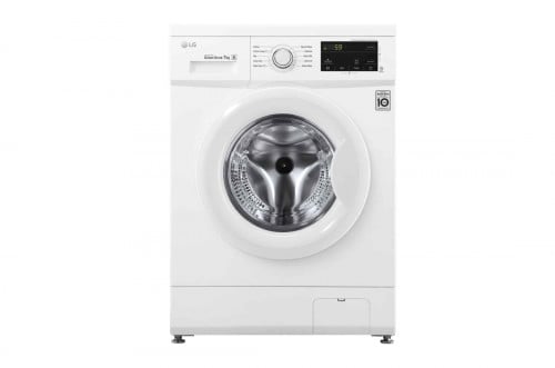 غسالة ملابس ال جي 7 كيلو تعبئة أمامية صنع في الصين ابيض / مقبض معدني أنيق / زجاج مقوى / موتور الدفع المباشر / واي فاي WF0710WHN
