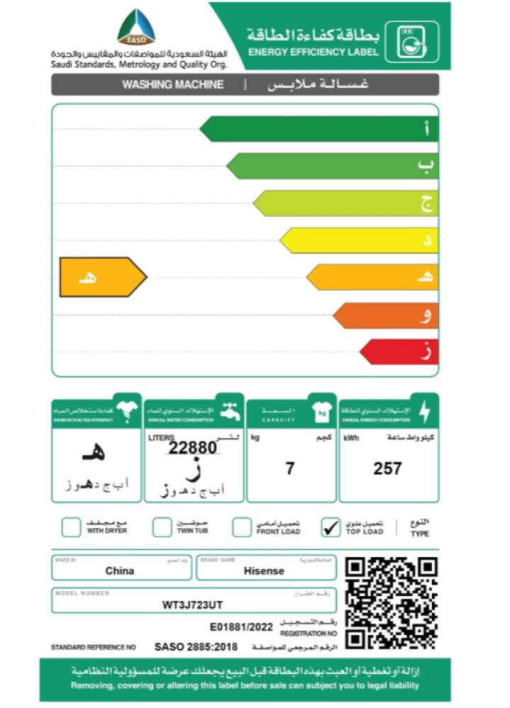 غسالة ملابس هايسنس كفاءة طاقة ه 7 كيلو تعبئة علوية رمادي داكن صنع في الصين WT3J723UT