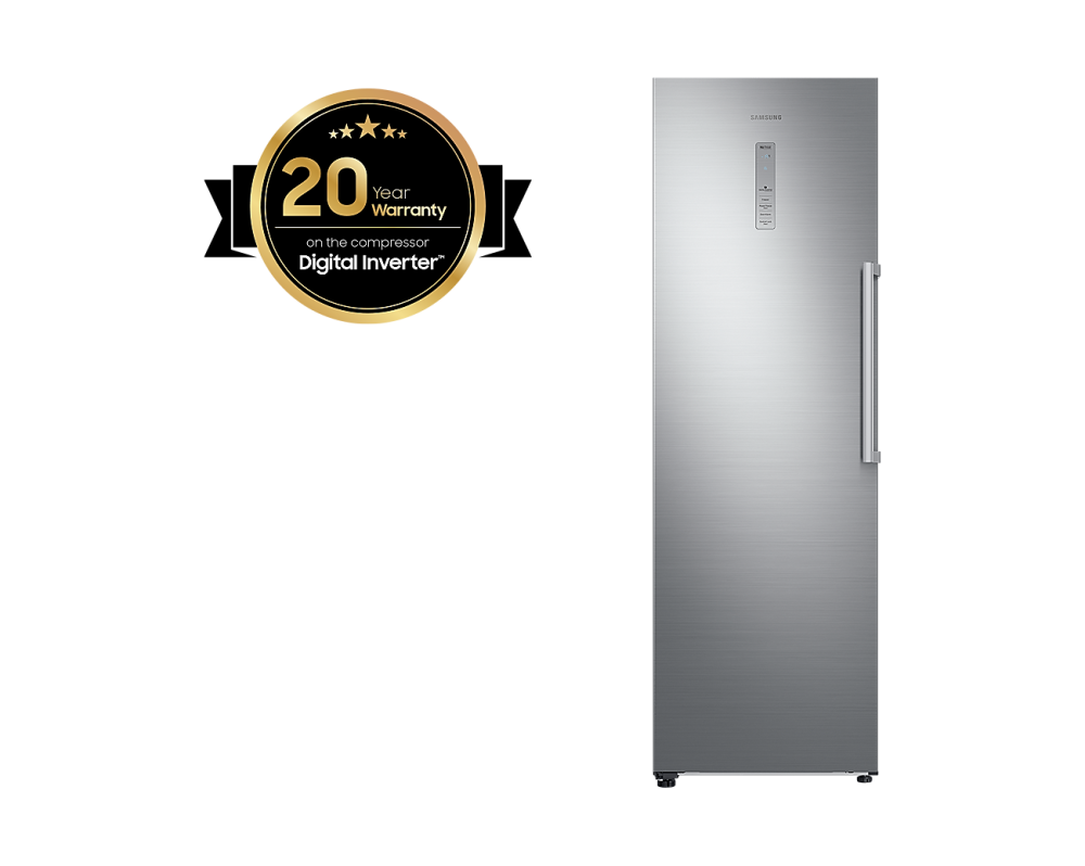 فريزر باب واحد سامسونج - 11.1 قدم تجميد الطاقة - تقنية العاكس الرقمي - الطاقة A+- التبريد الشامل - جاهز للدوجل الذكي - مقبض سهل - باب عكسي - بدون صقيع - ملون الفضة انفرتير صنع في فيتنام RZ32M71107F/ZA