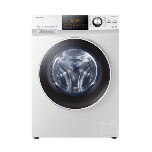 غسالة ومجفف متكامل من ELBA مصممة لتلبية احتياجاتك اليومية للعناية بملابسك بفضل أدائها العالي وتقنياتها الحديثة، مع تصميم أنيق باللون الأبيض يناسب أي منزل عصري.