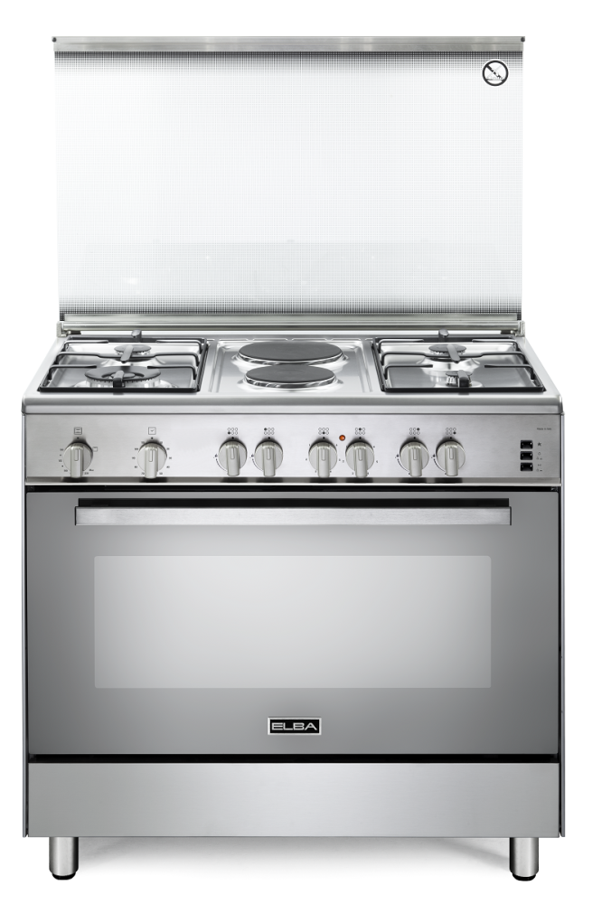 فرن غاز وكهرباء إلبا CXX9642GSA – 6 شعلات، 90 سم، ستانلس ستيل، صناعة إيطالية