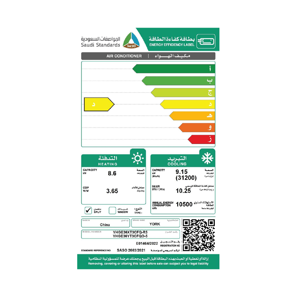 مكيف سبلت يورك آيس بيرج 3 طن حار بارد واي فاي روتاري صنع في الصين YHGE36XT3CFQ-R51 / YHGE36YT3CFQO-51