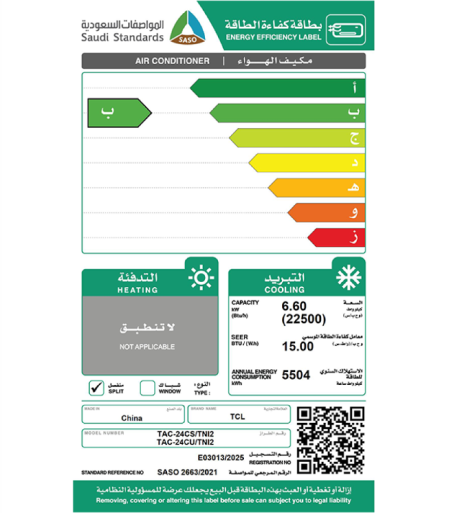 مكيف سبلت تي سي ال نيو كول 2 طن بارد واي فاي انفرتير صنع في الصين TAC-24CSU/TNI2