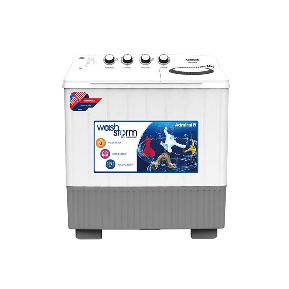 غسالة ملابس ادميرال 14 كيلو بحوضين سعة 14 كجم مع مقبض للتحكم في غطاء دوران مدخل الهواء وخزانة مقاومة للصدأ لون أبيض صنع في الصين ADTT14KUWCQ