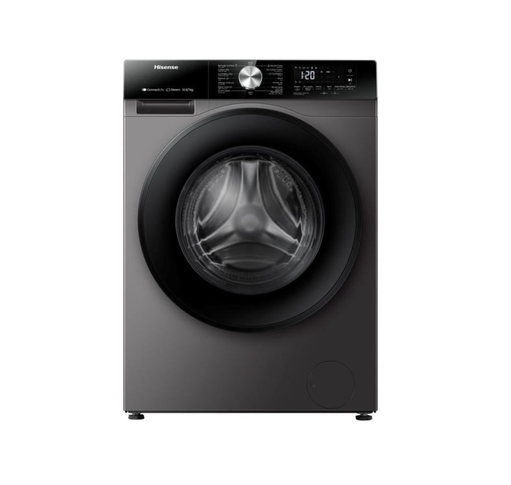 غسالة ملابس هايسنس 10.5 كيلو تعبئة أمامية مع تنشيف 7 كيلو تصنيفAواي فاي وضعية غسيل أوتوماتيكي وضعية غسيل سريع لون رمادي تيتانيوم انفرتير صنع في الصين WD3S1043BT6