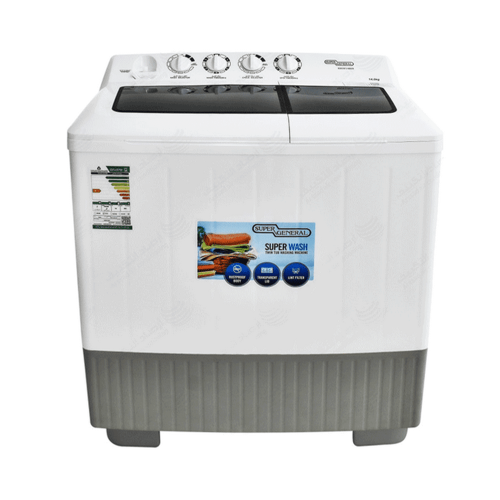 غسالة ملابس سوبر جينرال ابيض 13.5 كيلو حوضين صنع في الصين KSGW1486N