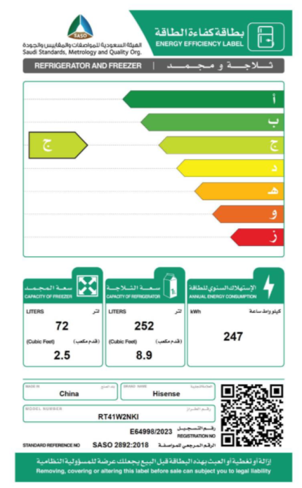 Hisense Top Freezer Refrigerator Energy Efficiency D Net Capacity 324 Liters 11.4 Cu. Ft White Made in China RT41W2NKI