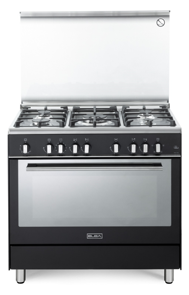 Free standing oven 90 cm - gasproduct specification:Manufacture: ItalianDesign: Matte black color with shiny stainless steel surface, elegant curved e...