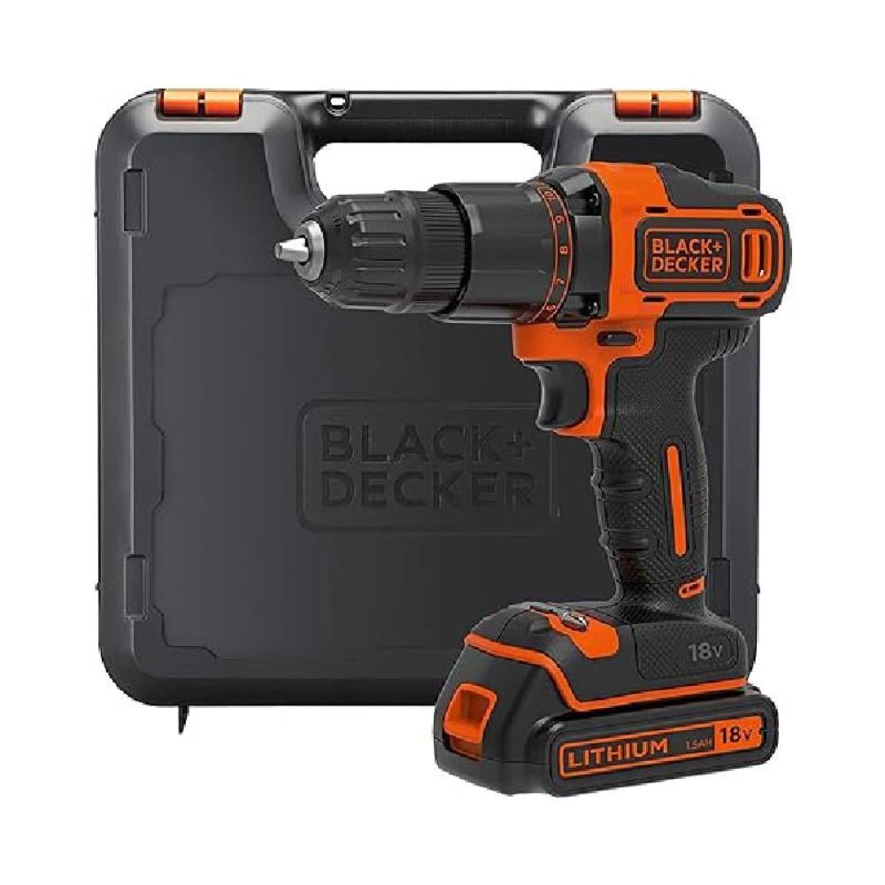 Black & Decker 18V 1.5Ah Hammer Drill Kit with Battery and Charger in Toolbox, Model BMT108 18V HD 1.5AH BAT CHAR KITBOX BMT108 Made in China BCD7108-B5