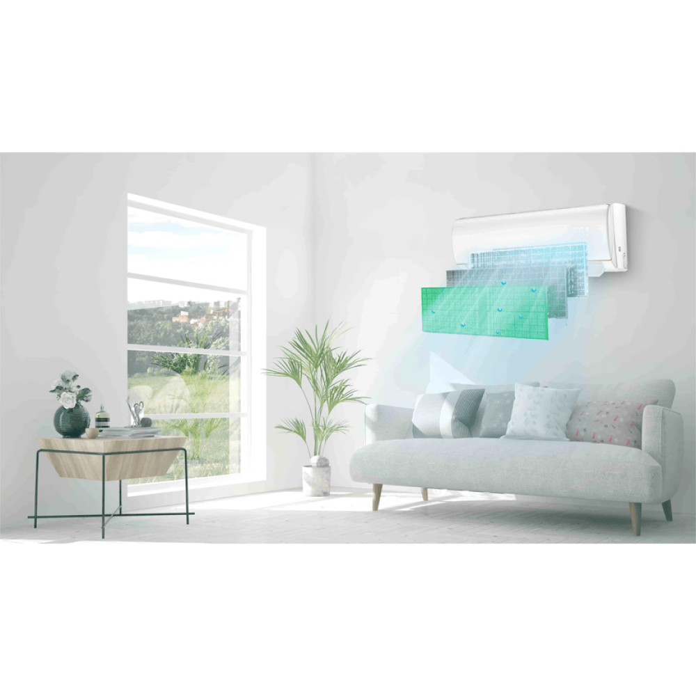 Elevate your home's atmosphere with the TCL TAC-24HSU/TSS1 ; a cooling and heating capacity of up to 21,600 BTU allows you to enjoy the ideal temperature in every season. Ideal for a large space thanks to 4-Way air distribution, a 6-in-1 hygienic filter that combines dust and odor filtration, advanced technologies such as I FEEL to adjust the climate to your proximity, Golden Fin for corrosion resistance, and a self-cleaning function to maintain optimal performance. Stylish white design, energy-efficient operation, and fast response.