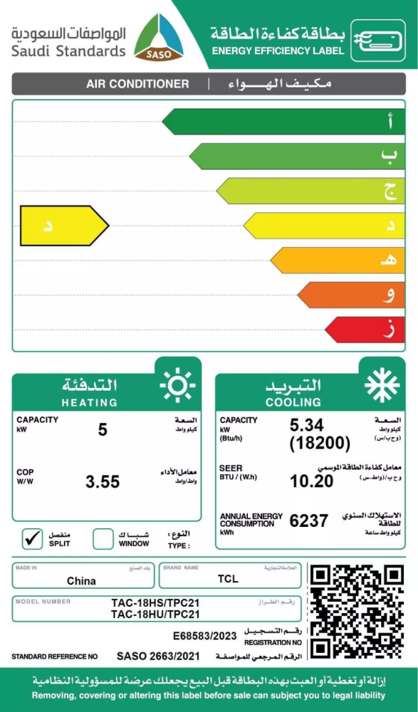 TCL Breeze N 1.5 Ton Split Air Conditioner Hot & Cold Wi-Fi Rotary Made in China TAC-18HSU/TPC21