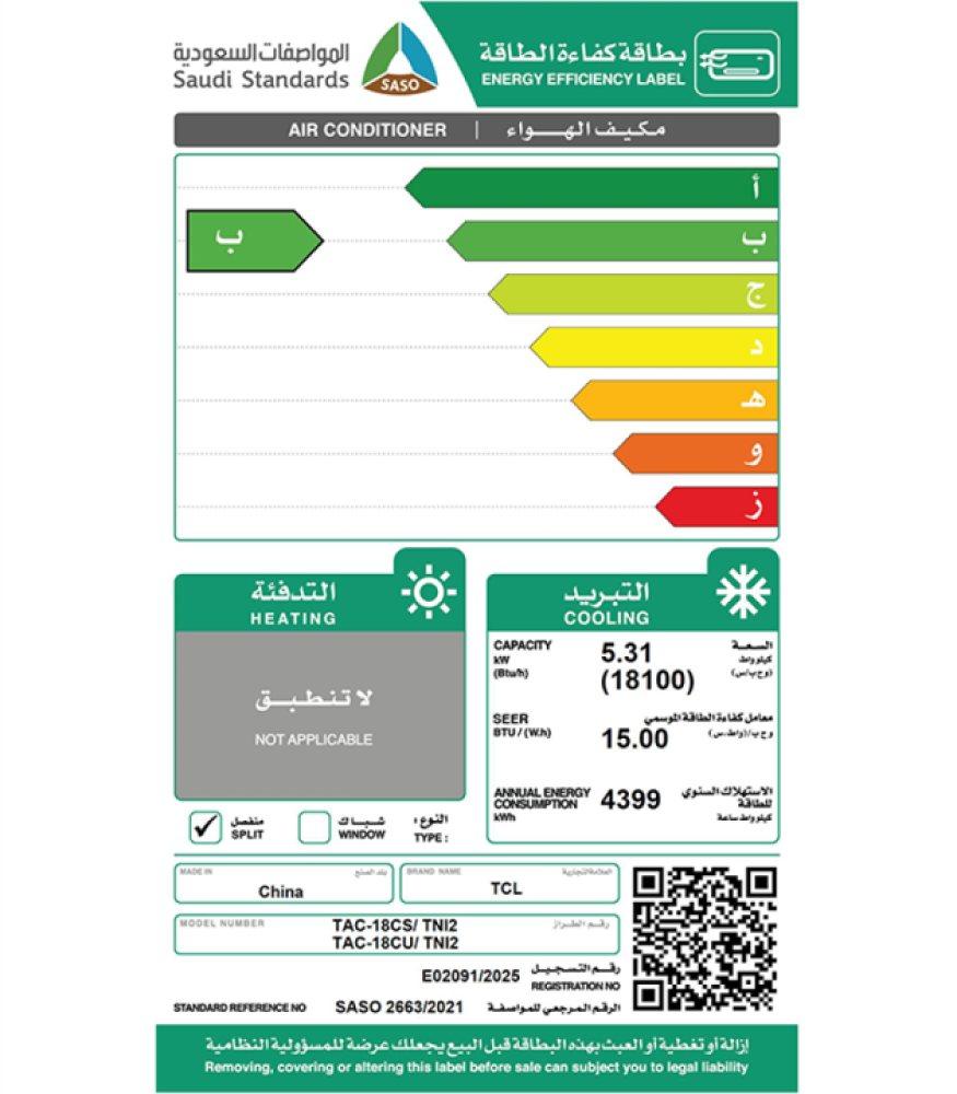 TCL New Cool 1.5 BTU Split Air Conditioner, Wi-Fi Inverter, Made in China TAC-18CSU/TNI2